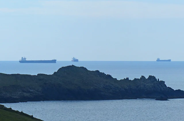 C Discovery was joined by two more cargo ships this morning - sure sign of how little wind there was, as they are not all pointing the same way !
