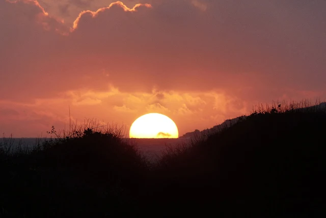 We both tend to turn around to check that there isn't a sudden red glow behind us - well this afternoon it was not a red glow but an unexpected reappearance of the sun