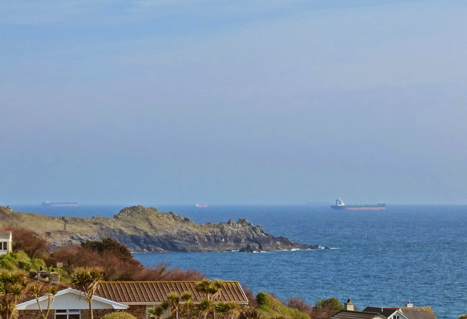 The rain passed and the cloud cleared and we could see three of the four vessels at anchor in the bay