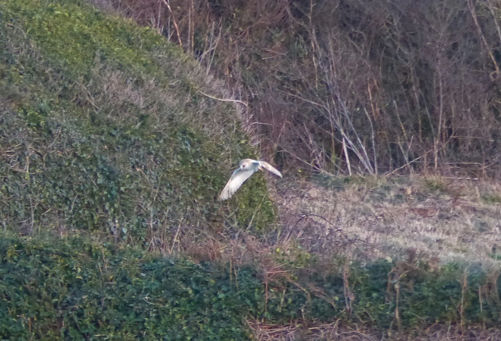 It was the Barn Owl that we have seen hunting over the fields at this time of day before