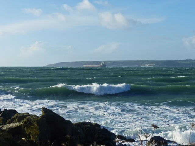 Looking out of the window first thing this morning and this was not the vessel we were expecting. It turned out that Samskip Express had left Mount's Bay under her own power and was already round Lands End making for Dublin. This was the 254 metre bulk carrier Magsenger 19 awaiting orders