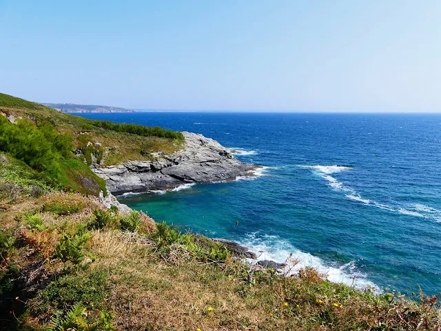 Coules Cove on the left with Keneggy beach further right - sadly this wonderful beach is now only accessible via the rocks and there is a danger of being cut off by the tide. We remember when you could walk down to Keneggy Beach, but it sadly washed away in a storm