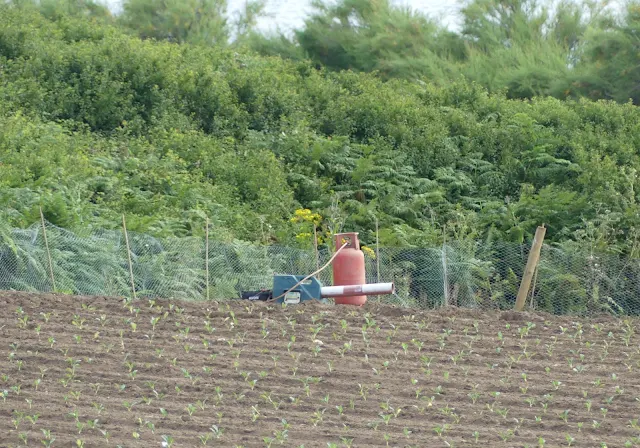 One of the gas-guns that are sounding loud bangs at the moment to scare the birds and bunnies away from the cropsSky was quite nice as we walked down Boat Cove Lane