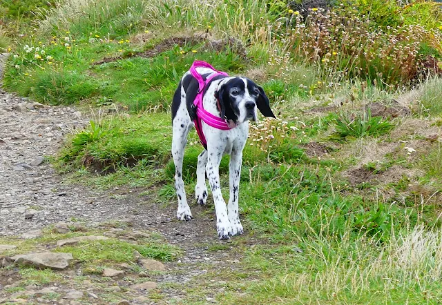 Tilly showing off her harness - she has taken a great dislike recently to walking on her lead using her ordinary collar - walking slower and slower. We know she can walk well as off the lead she is fine, so we're trying the harness and she is a lot better. If we can't persuade her to walk better we will have to miss all of our favourite Summer events