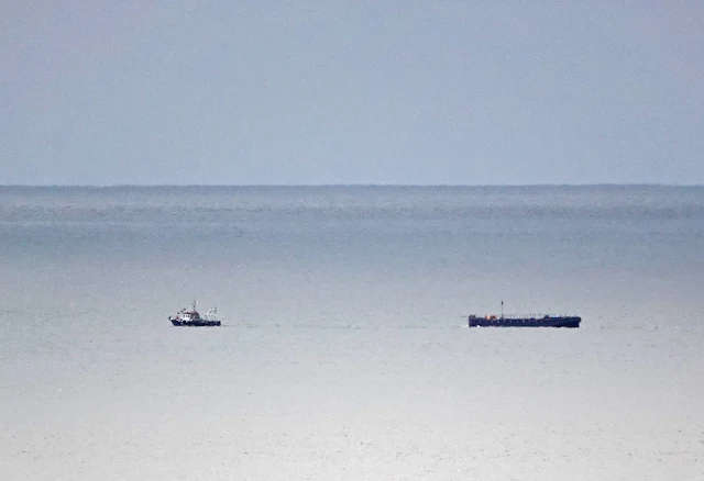 First thing this morning I spotted the tug Danmark crossing the bay not sure what she was towing - but she took it to Gweek - gather it's a live-aboard barge that had been worked on by the Dry Dock